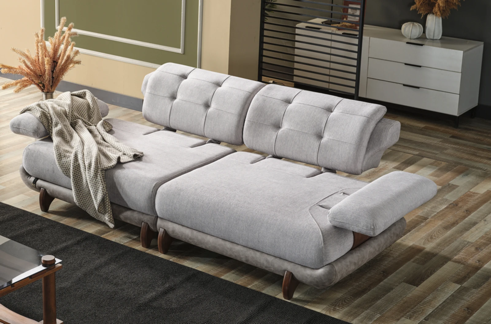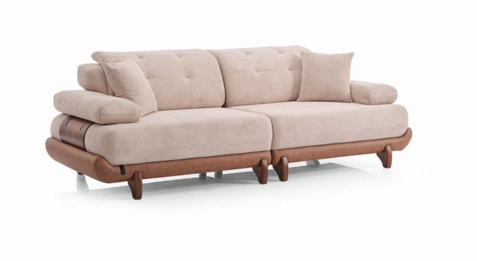 Yumuşak dokulu açık renk kumaşı, doğal ahşap detayları ve yuvarlatılmış hatlarıyla Alexa koltuk takımı yaşam alanına sakin bir şıklık getirir. Geniş oturum alanları sayesinde uzun sohbetler, kısa kestirmeler ve keyifli anlar için tasarlandı.