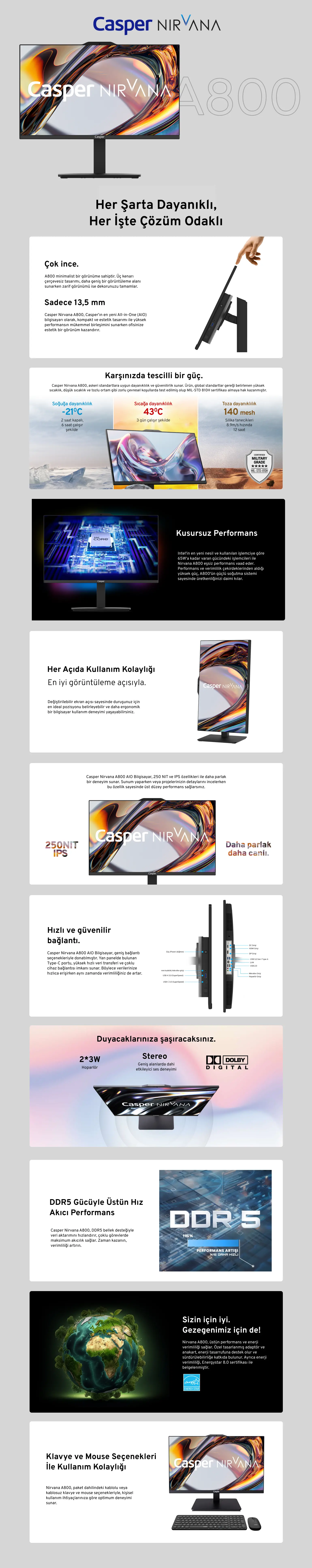 Casper Nirvana A80.1342-BV00X-V-S i5-13420H 16 GB 500 GB SSD UHD Graphics 23.8" Full HD All in One PC
